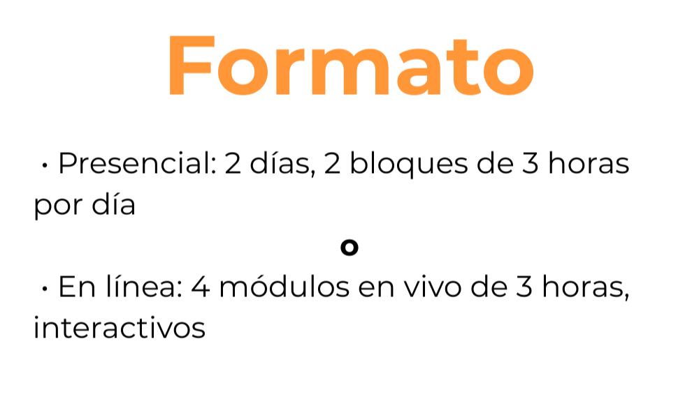 Sin diapositivas. Totalmente práctico. Por diseño.