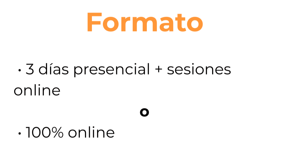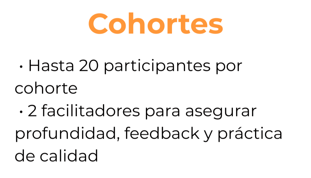 Impartidas de forma presencial u online por facilitadores senior, siempre con dos trainers guiando el diálogo, la profundidad y el flujo de aprendizaje.